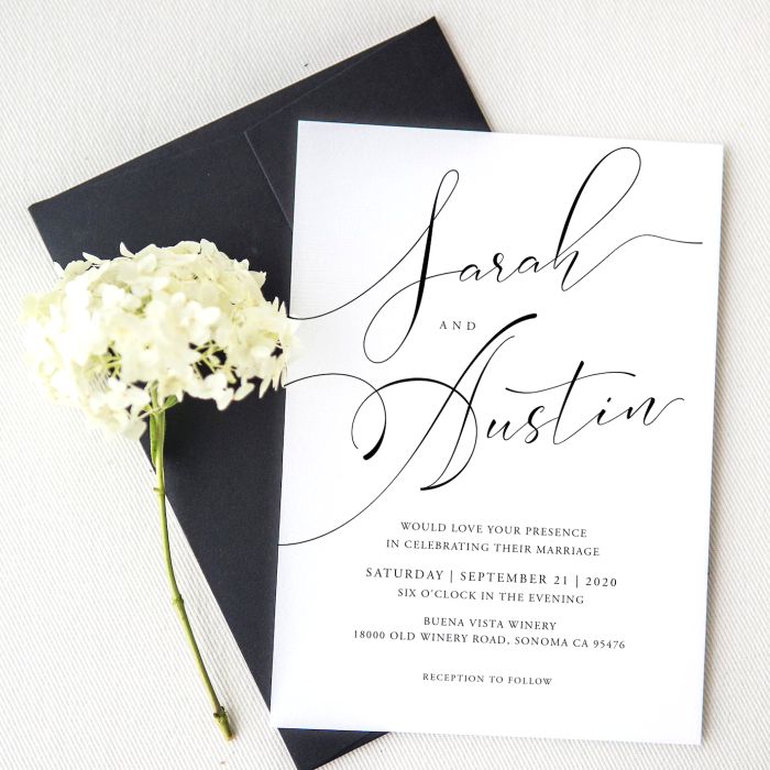 Les invitations comprennent des enveloppes blanches.